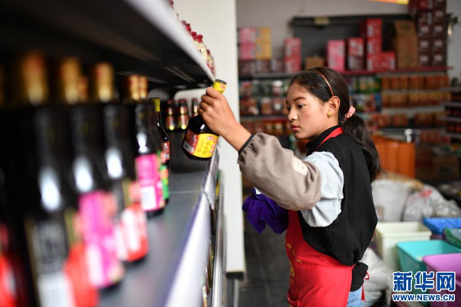 西藏昌都市丁青縣尺牘鎮烏(wu) 巴村村民斯朗德吉在尺牘鎮的一家超市裏打工(9月18日攝)。2018年,斯朗德吉和家人從(cong) 烏(wu) 巴村搬遷到尺牘鎮易地扶貧搬遷安置點,住進了寬敞明亮的新房子。斯朗德吉還就近在安置點附近的超市找到了工作,每個(ge) 月有2000元的收入。新華社記者 詹彥 攝