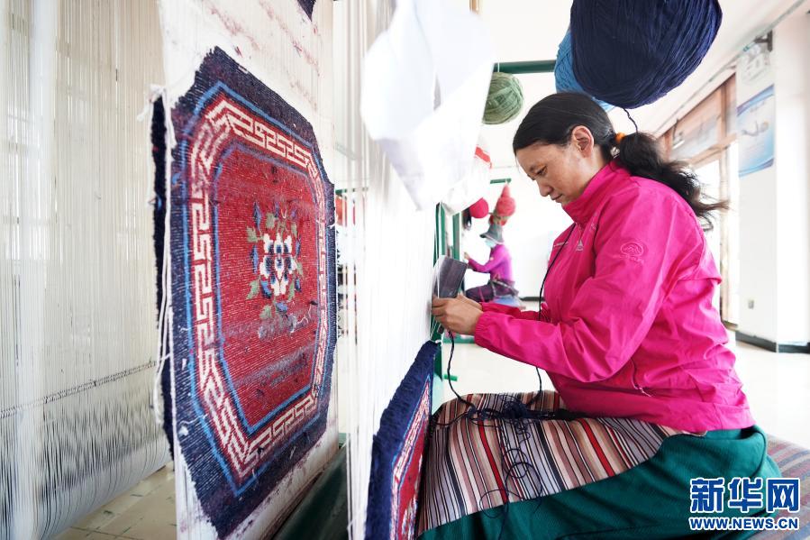 西藏阿裏地區改則縣麻米鄉(xiang) 村民崗增在噶爾縣康樂(le) 新居服裝地毯加工廠裏工作(7月25日攝)。2017年,崗增和家人搬遷到噶爾縣康樂(le) 新居易地扶貧搬遷安置點,住進了125平方米的新居。崗增還就近在安置點的服裝地毯加工廠找到了工作,每個(ge) 月有3000元左右的收入。新華社記者 詹彥 攝