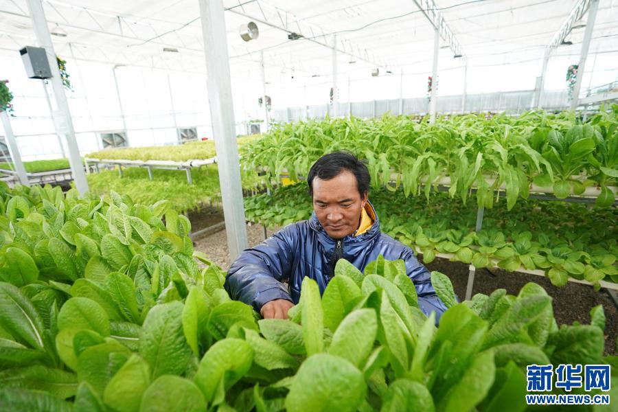 在西藏阿裏地區噶爾縣生態農(nong) 業(ye) 產(chan) 業(ye) 園,噶爾縣左左鄉(xiang) 上左左村村民宿加在查看蔬菜生長情況(7月25日攝)。2017年,宿加來到噶爾縣生態農(nong) 業(ye) 產(chan) 業(ye) 園打工,學習(xi) 蔬菜種植技術。如今,他已成為(wei) 噶爾縣生態農(nong) 業(ye) 產(chan) 業(ye) 園的一把好手,每個(ge) 月有6000元的收入。新華社記者 詹彥 攝
