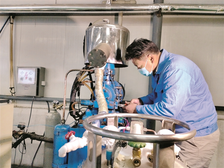圖為(wei) 拉瓊在檢修液氮機。拉薩融媒記者 莫瑞英攝
