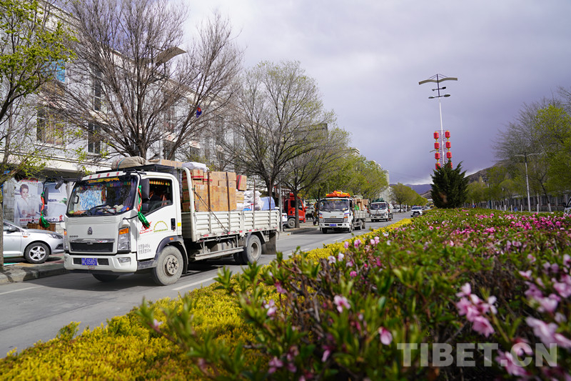 圖為(wei) 農(nong) 民運輸連隊在山南市區運貨中