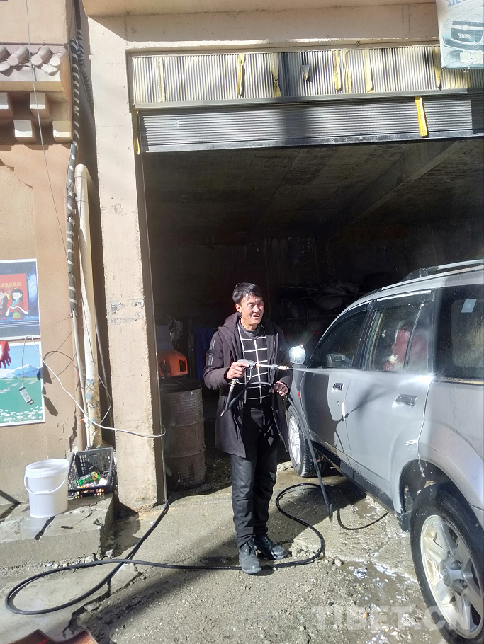 位於(yu) 理塘縣城國道318沿線替然色巴活動中心旁,格聶神山洗車店生意紅火。因為(wei) 洗得幹淨,服務態度好,價(jia) 格合理,一傳(chuan) 十,十傳(chuan) 百,前來洗車的人絡繹不絕。