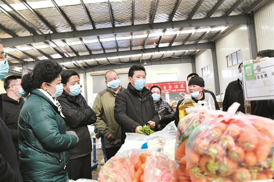 1月6日上午,拉薩市委副書(shu) 記、市長果果前往城關(guan) 區智昭產(chan) 業(ye) 園調研。圖為(wei) 果果在城關(guan) 區智昭產(chan) 業(ye) 園區農(nong) 貿批發市場了解市場物資保供及凍儲(chu) 物資儲(chu) 備情況。拉薩融媒記者 貢嘎來鬆攝