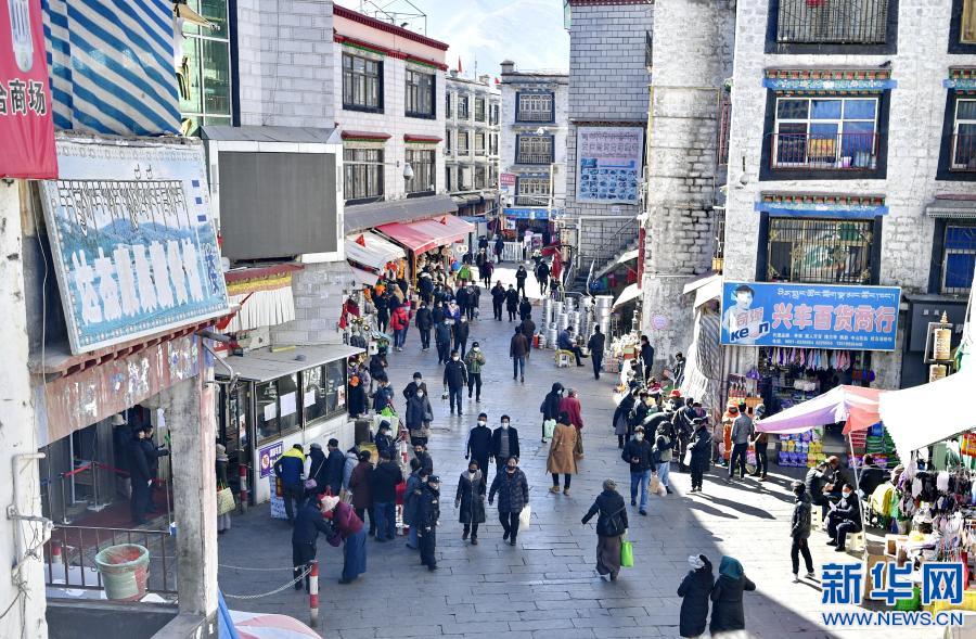 人們(men) 在拉薩市衝(chong) 賽康市場逛街購物(2020年2月14日攝)。新華社記者 張汝鋒 攝