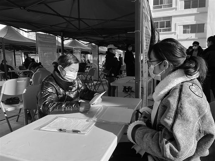 求職者與(yu) 用人企業(ye) 溝通。記者 趙越 攝
