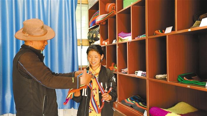 在措勤縣民族特色產(chan) 業(ye) 線下體(ti) 驗館裏,牧區傳(chuan) 統的韁繩、腰帶、靴子、馱包等手工藝品應有盡有。據了解,這些商品由群眾(zhong) 自製後交由阿雲(yun) 電子商務有限公司統一銷售,銷售收入將一分不少地返還給群眾(zhong) 。在這裏上班脫貧戶頓珠上個(ge) 月拿到了1800元的工資,其中包括400元的提成。