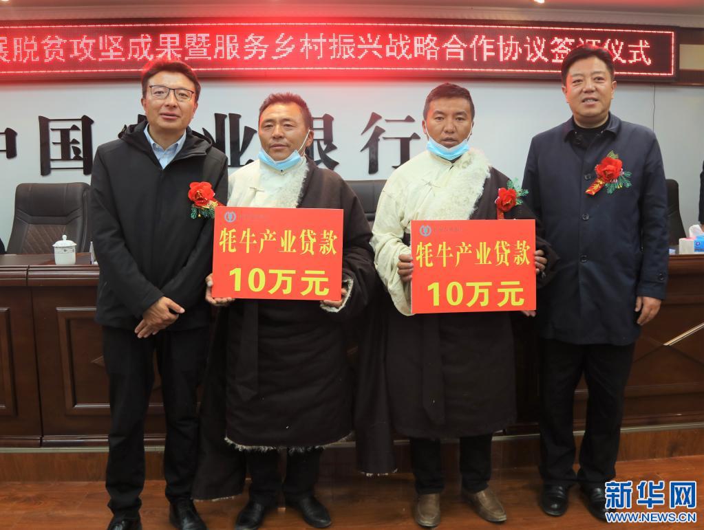 近日,拉薩市當雄縣人民政府與(yu) 中國農(nong) 業(ye) 銀行拉薩分行、西藏財信融資擔保有限公司簽訂鞏固拓展脫貧攻堅成果暨服務鄉(xiang) 村振興(xing) 戰略合作協議,並發放5筆精準扶貧小額到戶貸款,13筆“惠農(nong) e貸”,2筆“犛牛產(chan) 業(ye) 貸款”。