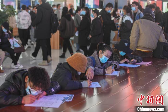 求職者在招聘會(hui) 上填寫(xie) 個(ge) 人信息。 貢嘎來鬆 攝