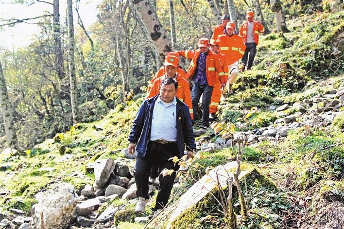 增巴帶領森林巡邏隊在林區巡山。記者 張斌 陳林 攝