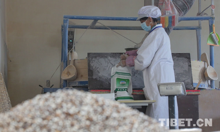 圖為(wei) 山南市隆子縣洛旦農(nong) 畜產(chan) 品加工合作社,工人正在將黑糌粑進行包裝(資料圖)