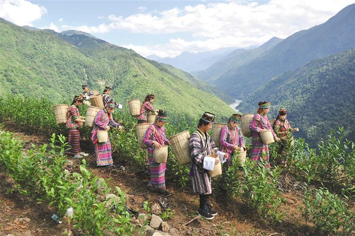 墨脫縣背崩鄉(xiang) 群眾(zhong) 在茶山采茶。