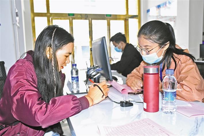 今年以來,西藏林芝市積極采取各種措施促進高校畢業(ye) 生就業(ye) ,其中每周五舉(ju) 行的周五精品招聘會(hui) 更是深受廣大高校畢業(ye) 生和求職者的青睞。 圖為(wei) 求職者在向企業(ye) 代表谘詢相關(guan) 問題。 記者 張猛 攝