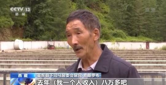 亞(ya) 東(dong) 縣下司馬居委會(hui) 居民 索朗羅布:去年(我一個(ge) 人收入)八萬(wan) 多,魚塘裏麵工資也有,國家邊境補貼也有,生活可以的,沒事(問題)的。
