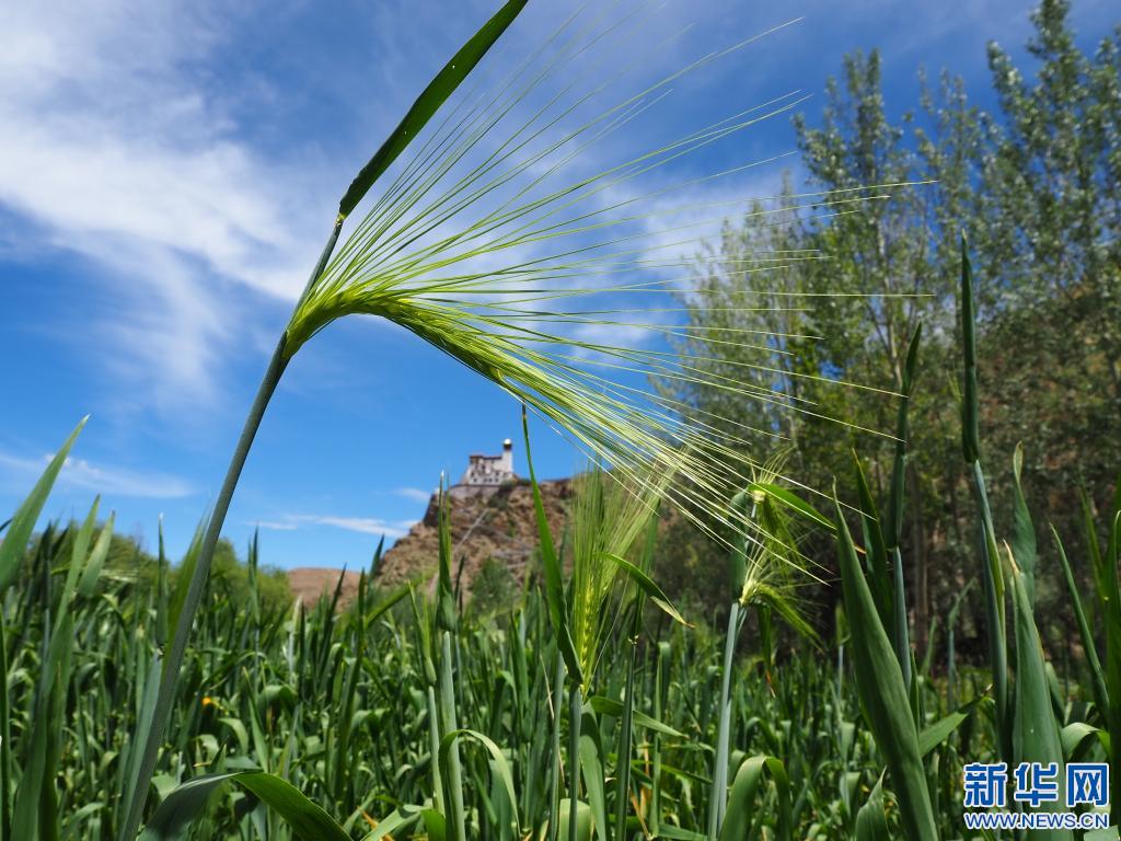 站在西藏曆史上第一塊農(nong) 田薩熱索當上看西藏第一座宮殿雍布拉康(6月24日攝)。新華社記者 金一清 攝