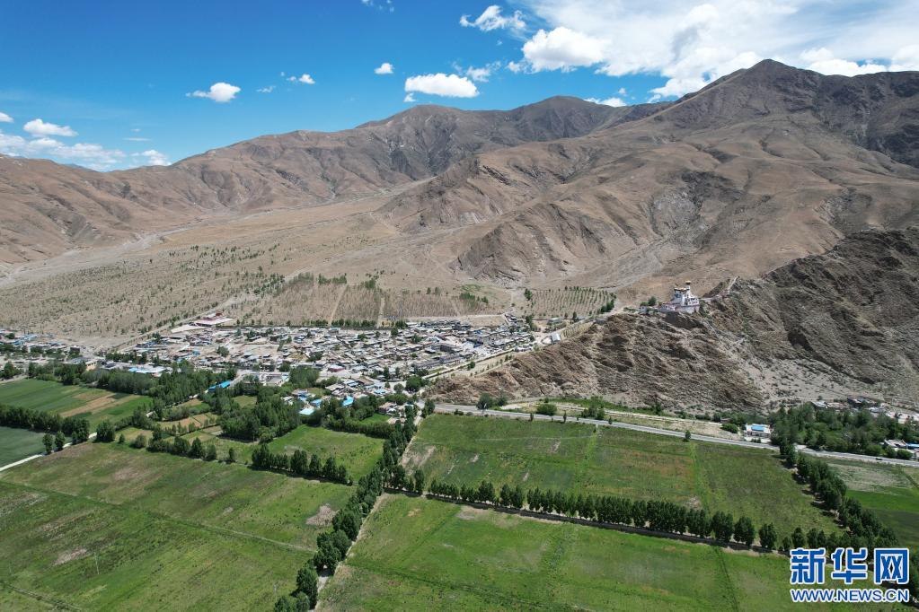 遠眺雍布拉康和門中崗社區(無人機照片,6月24日攝)。新華社記者 司源 攝