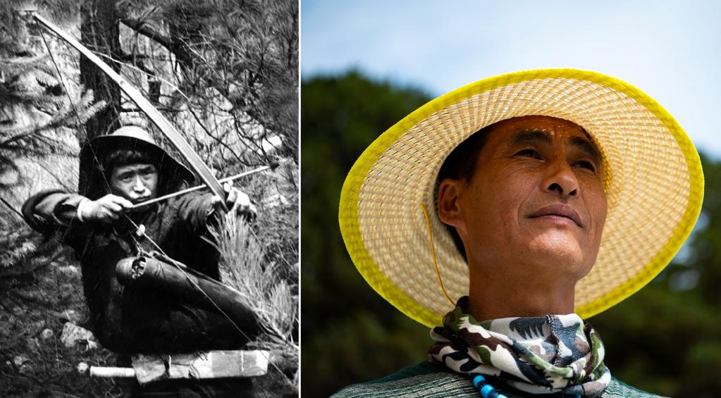 左圖是20世紀50年代瓊林村非常有名的獵手達前(資料照,新華社發);右圖是瓊林村珞巴族達吉,結束打獵生涯,成為(wei) 護林員(2021年6月19日攝)。新華社記者 晉美多吉 攝