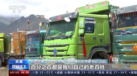 拉薩市堆龍德慶區東(dong) 嘎街道東(dong) 嘎社區黨(dang) 委書(shu) 記 江白:運輸裏麵百分之百都是我們(men) 自己的老百姓,2009年當時我們(men) 隻有40個(ge) 車子,然後就是2016年我們(men) 差不多180輛車,已經擴大了。