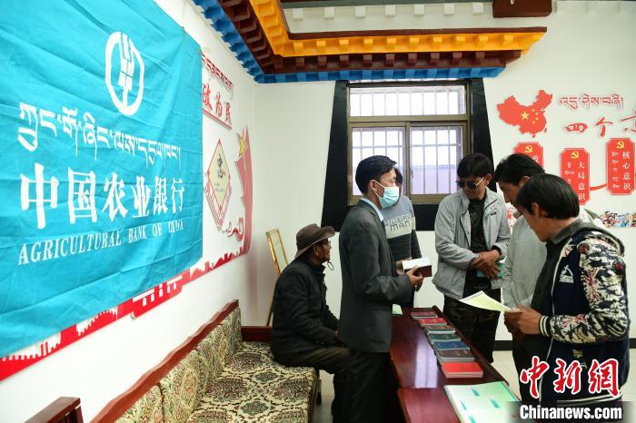 圖為(wei) 農(nong) 行日土縣支行工作人員在甲崗村進行金融政策宣講。 貢嘎來鬆 攝
