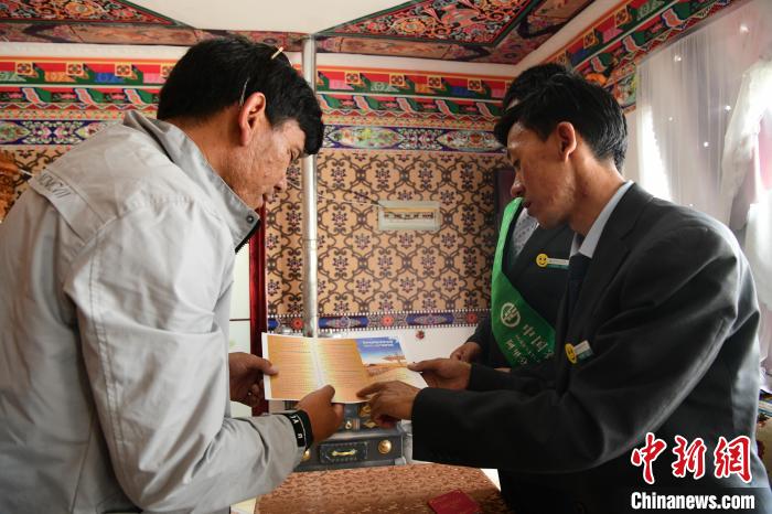 圖為(wei) 農(nong) 行日土縣支行工作人員為(wei) 村民宣講貸款政策。 貢嘎來鬆 攝