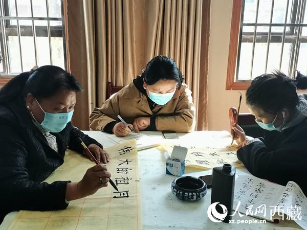 “村裏有好多人喜歡書(shu) 法,恰好城關(guan) 區開展新時代文明實踐站·一村一特色文化品牌村(社區)創建活動,我們(men) 就想著往這個(ge) 方麵打造一下。”蔡村第一書(shu) 記土登洛桑介紹。如今,每逢周六,村裏會(hui) 邀請拉薩市文聯、拉薩市書(shu) 法家協會(hui) 的書(shu) 法名家,為(wei) 熱愛書(shu) 法的村民們(men) 傳(chuan) 授技藝。