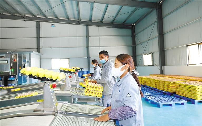 圖為(wei) 西藏本土農(nong) 產(chan) 品企業(ye) 裏工人在包裝藏雞蛋。記者 潘多 攝