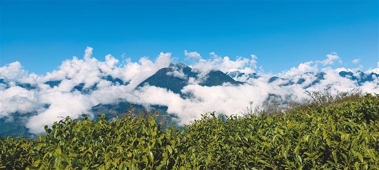 雲(yun) 霧縹緲、雪山環繞的格林村百畝(mu) 茶園。本報記者 高玉潔 攝