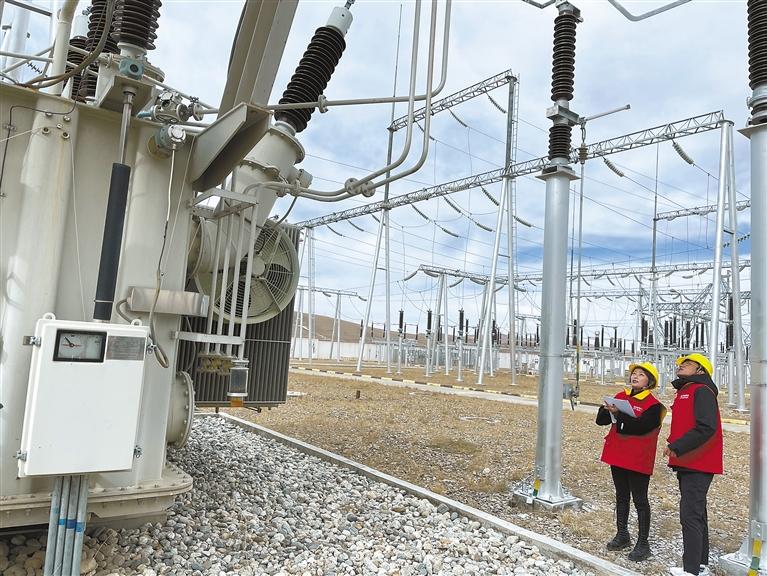 圖為(wei) 國網那曲供電公司變電運檢中心員工在對110千伏那曲變電站設備進行檢查。記者 萬(wan) 靖 攝