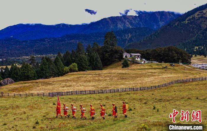 圖為(wei) 森林消防隊員在魯朗國際小鎮景區巡護。 西繞拉翁 攝