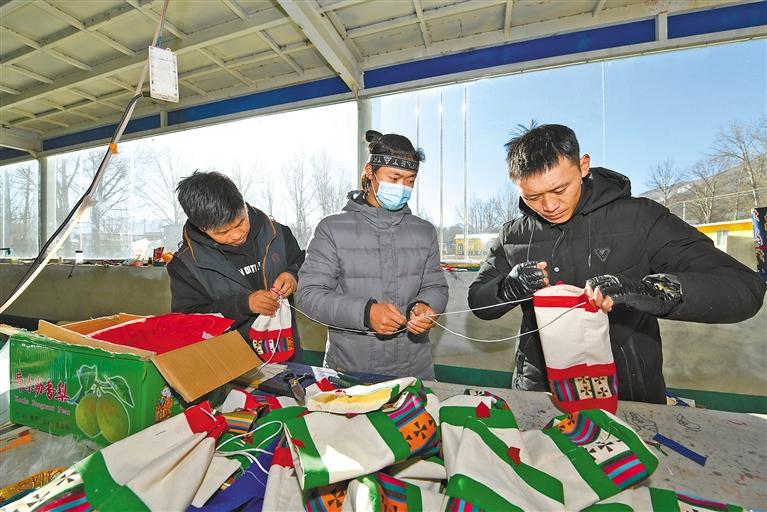圖為(wei) 西藏古傳(chuan) 民族手工業(ye) 有限公司員工製作手工藝品。