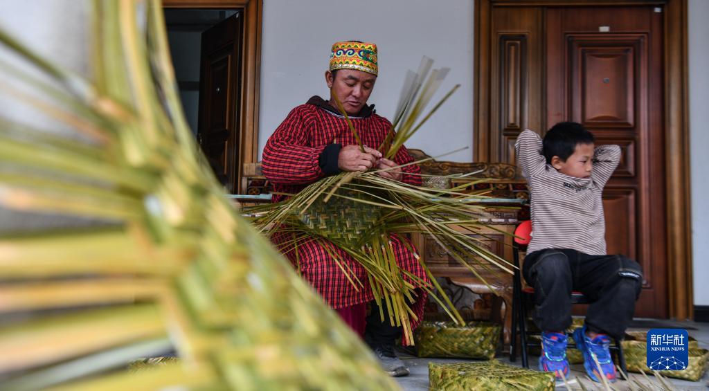 巴登村村民在家編織竹筐(4月15日攝)。新華社記者 晉美多吉 攝