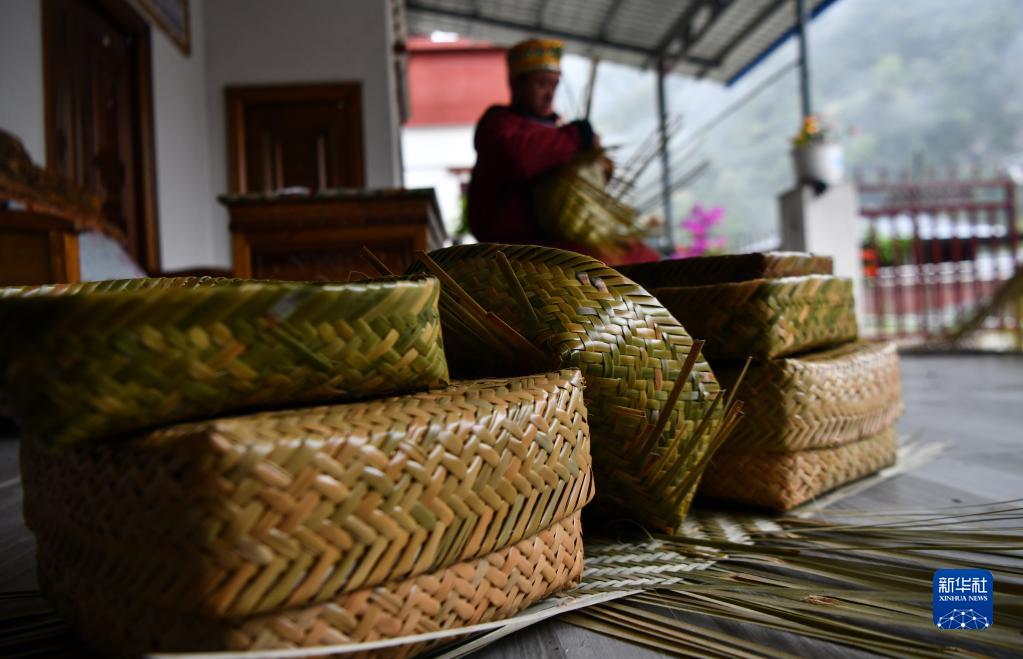 這是新向東(dong) 編織的竹器產(chan) 品(4月15日攝)。新華社記者 晉美多吉 攝