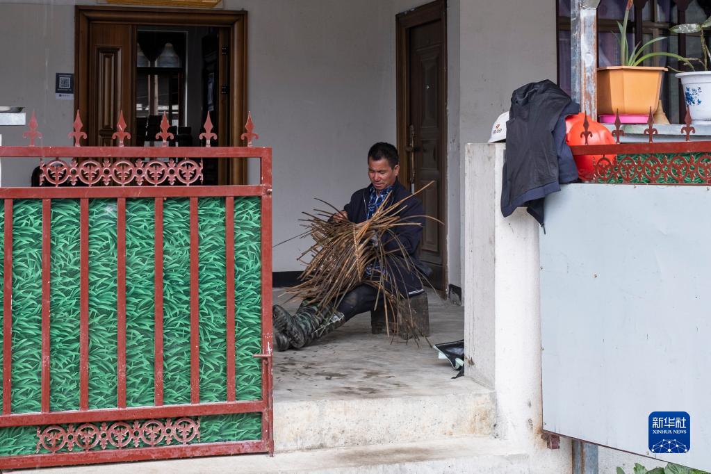 巴登村村民在家編織竹筐(4月15日攝)。新華社記者 孫非 攝