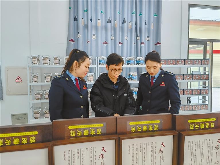 圖為(wei) 波密縣稅務局工作人員在西藏波密高原藏天麻產(chan) 業(ye) 開發有限公司進行走訪調研。記者 張猛 攝