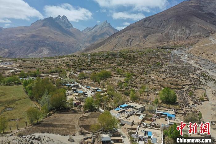 圖為(wei) 4月12日,色麥村柳樹吐綠,春意濃濃。(無人機照片)。 中新社記者 貢嘎來鬆 攝