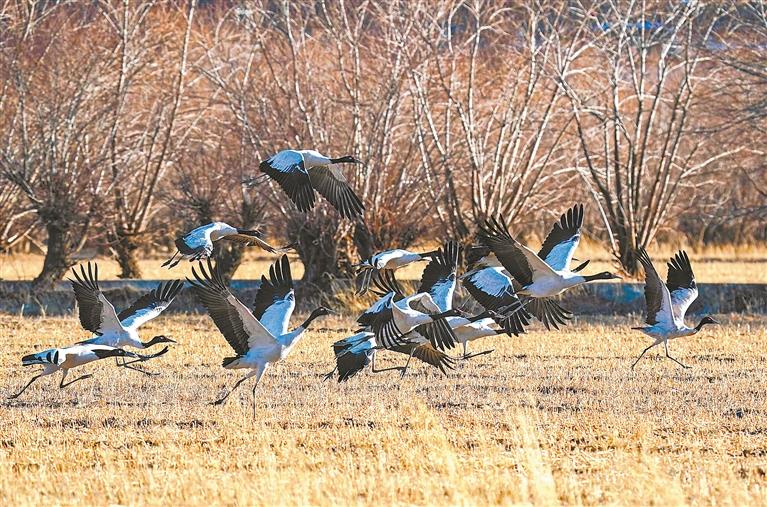 雅魯藏布江中遊河穀黑頸鶴自然保護區,是西藏“一江兩(liang) 河”流域以國家一級保護動物黑頸鶴為(wei) 主要保護對象的國家級自然保護區。日喀則市拉孜縣到南木林縣之間的雅魯藏布江中上遊河穀,是黑頸鶴越冬棲息最為(wei) 集中的區域之一。據最新調查統計,在日喀則市境內(nei) 越冬的黑頸鶴成鳥數8400餘(yu) 隻,比保護區建立初期數量增長了3000餘(yu) 隻。