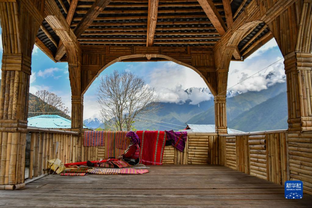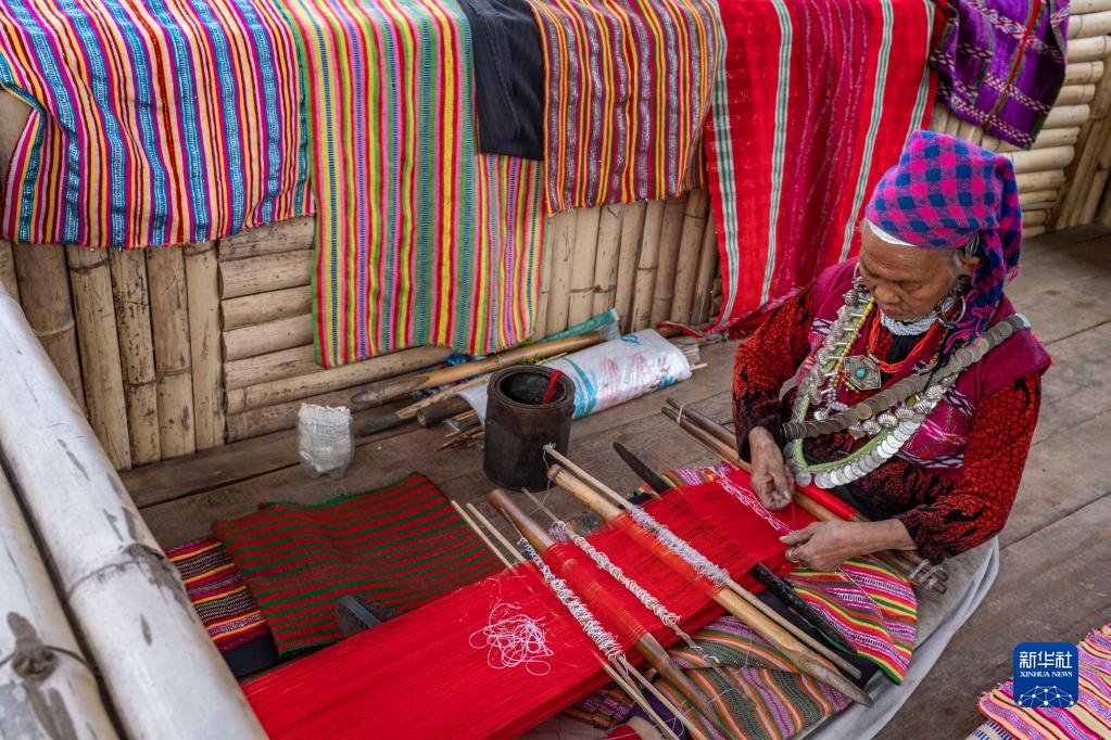 今年72歲的本央老人,是僜人服飾製作技藝西藏自治區級非遺傳(chuan) 承人。在西藏林芝市察隅縣沙瓊村,老人身著傳(chuan) 統的僜人服飾,在自家的涼亭裏編織布料。