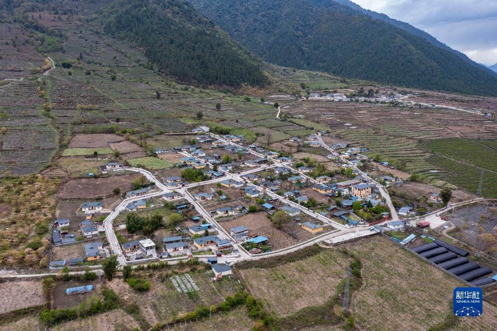 西藏林芝市察隅縣沙瓊村全景(4月19日攝,無人機照片)。新華社記者 孫非 攝