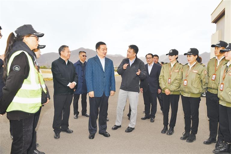 調研中,王君正強調,黨(dang) 的十八大以來,習(xi) 近平總書(shu) 記始終高度重視西藏工作、深切關(guan) 懷西藏各族人民,親(qin) 自為(wei) 西藏工作把舵定向、謀篇布局,為(wei) 做好西藏工作指明了前進方向、提供了根本遵循。自治區黨(dang) 委、政府立足西藏實際,統籌推進新興(xing) 產(chan) 業(ye) 培育、交通基礎設施和通用航空產(chan) 業(ye) 建設,呈現出良好發展勢頭。