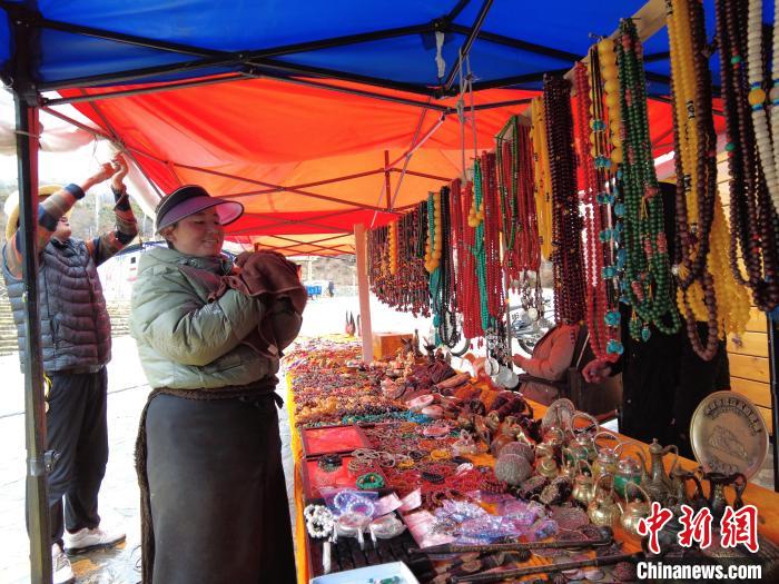 圖為(wei) 尼瑪拉措在林芝市米林縣的南迦巴瓦觀景台上擺攤賣貨。 西藏自治區交通運輸廳供圖