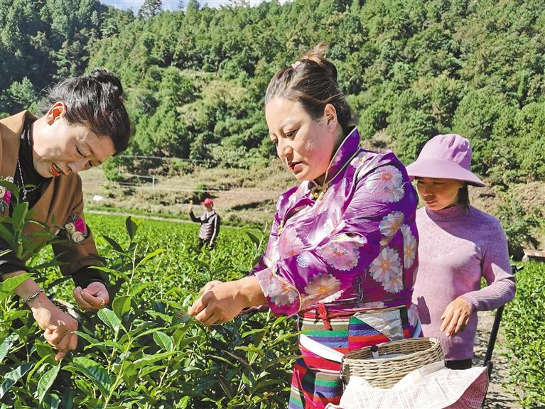 圖為(wei) 察隅縣下察隅鎮沙瑪村村民正在采茶。記者 謝筱純 王珊 張猛 通訊員 滕雲(yun) 攝