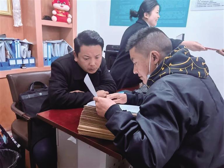 人行拉薩中支工作人員給市民講解貸款業(ye) 務流程。