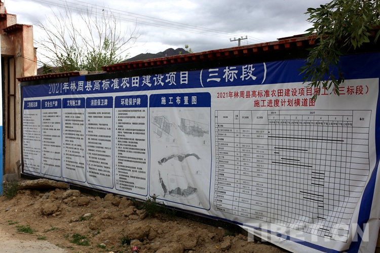 圖為(wei) 2021年林周縣高標準農(nong) 田建設項目公示牌 攝影:王佳豪