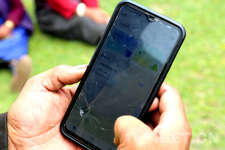 記者在阿朗鄉(xiang) 拉康村見到尼瑪次仁時,他正在玩著手機和家人朋友悠閑地聊著天。