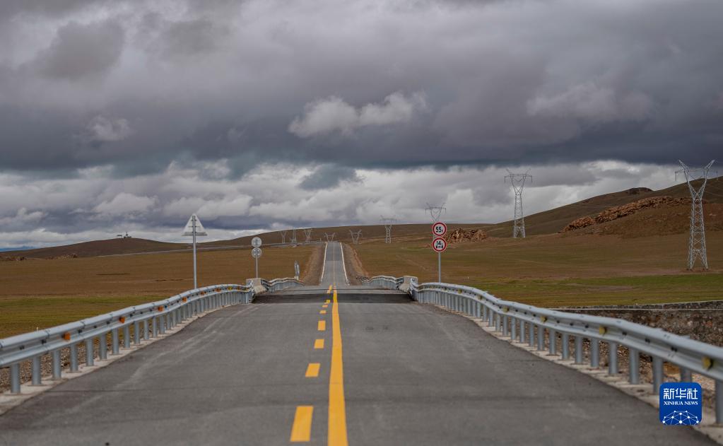 這是雙湖縣境內(nei) 的公路和電網(7月14日攝)。新華社記者 晉美多吉 攝
