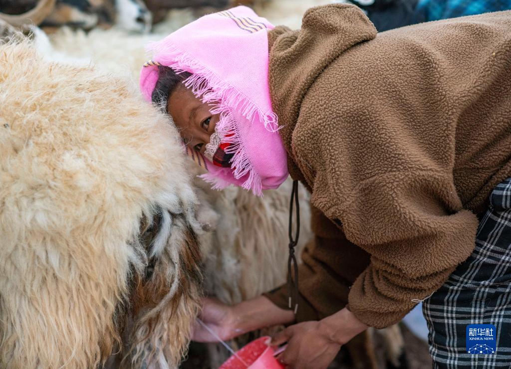 傍晚,男人們(men) 放牧歸來,羊群被趕到圍欄邊,嘎瑪的外孫女石秀措姆加入了擠奶的隊伍。