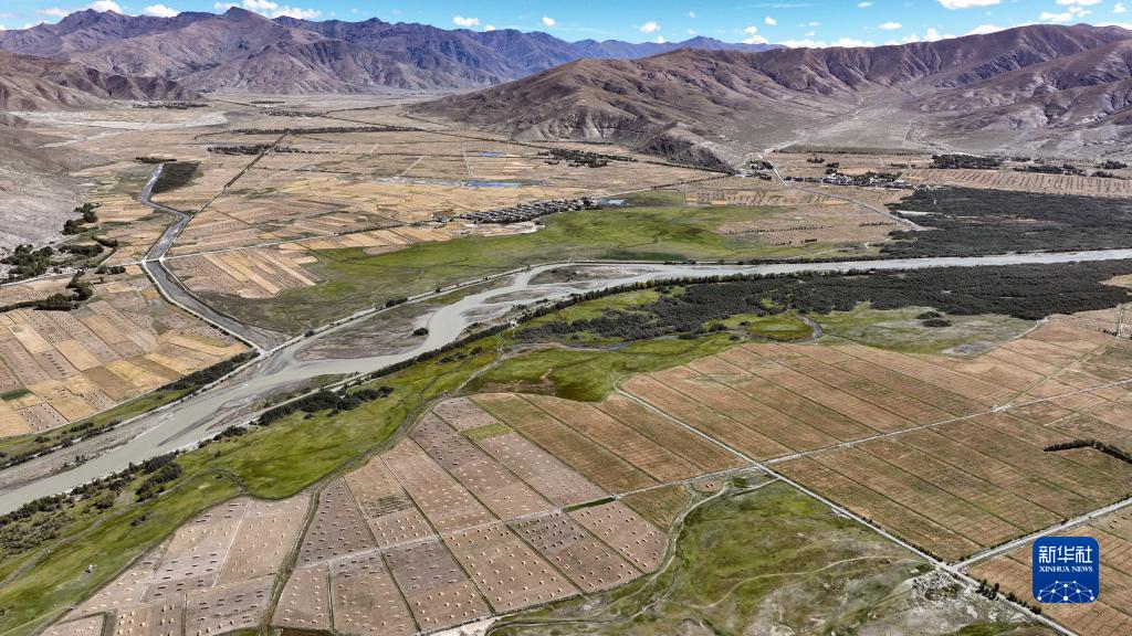 年楚河流域西藏日喀則江孜段富饒的農(nong) 田(9月19日攝 無人機照片)。