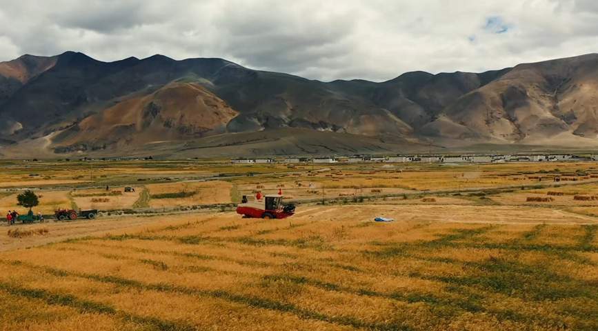 “截至9月22日,日喀則全市已收割農(nong) 作物89萬(wan) 畝(mu) ,占農(nong) 作物總播種麵積的63%以上,秋收整體(ti) 進度與(yu) 往年基本一致。”日喀則市政府副秘書(shu) 長紮西桑旦說。