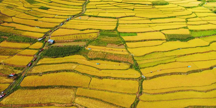 農(nong) 穩天下安,農(nong) 富國家盛。9月23日是第五個(ge) 中國農(nong) 民豐(feng) 收節。在這金秋送爽、青稞飄香的美好時節,西藏疫情防控正處於(yu) 關(guan) 鍵時期,在做好疫情防控的同時,西藏各地秋收工作也在有序展開,農(nong) 民在農(nong) 田果園來回忙碌穿梭,豐(feng) 收的喜悅和幸福洋溢在臉上。