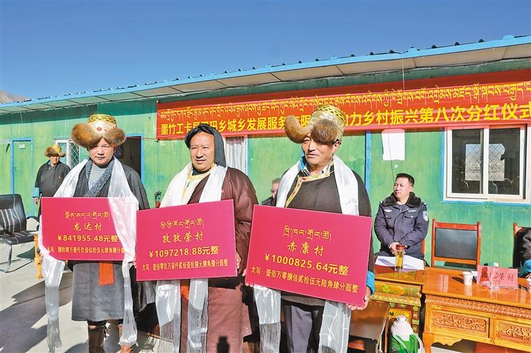 近日,拉薩市墨竹工卡縣甲瑪鄉(xiang) 城鄉(xiang) 發展服務有限公司舉(ju) 行第八次分紅儀(yi) 式,為(wei) 全鄉(xiang) 群眾(zhong) 分紅294萬(wan) 元。