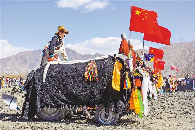 圖為(wei) 拉薩市墨竹工卡縣唐加鄉(xiang) 莫衝(chong) 村開耕儀(yi) 式現場。 記者 格桑倫(lun) 珠 黃誌武 攝